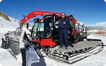 Dabei fahren PistenBullys unter schwierigen Bedingungen: häufig über große Steine, immer wieder ist das Drehen des Fahrzeugs auf der Stelle nicht zu vermeiden – etwa an Ziehwegen. Dann bewegt sich eine Kette vor-, die andere rückwärts, für beide ist es eine Strapaze. „Wie oft dieses Manöver vorkommt, ist auch fahrerabhängig“, so Michael Bublitz.